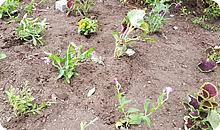 育つと背が高くなるものを奥に、背が低いものを手前に、適度な間隔を空けて植えました。