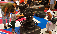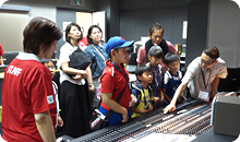 好評だった「バイキング」のスタジオ見学を今年も行いました。放送が終わったばかりの技術スタッフが実際に使用しているカメラやマイクなどの使い方を教えてくれてみんなで体験しました。自分で撮影した映像や操作した音声がスタジオに流れるたびに笑い声があふれました。