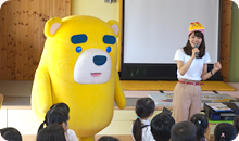 大きな紙芝居の中から旬の野菜を探しだすクイズコーナーでは大勢の手が上がり、全員を当てられないのが悔しいほど!『どっこくん体操』も練習してきてくれ、東海テレビのキャラクター・イッチーと共に一生懸命、上手に踊ってくれました♪