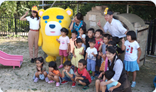 9月5日に愛知県名古屋市のいしん保育園と瀬戸市の古瀬戸保育園で、食育出前出張授業『ハロー!どっこくん。』を開催しました。今回の先生はフジテレビの井上清華アナウンサーと東海テレビの庄野俊哉アナウンサー。東海テレビのイッチーも暑さに負けず参加!