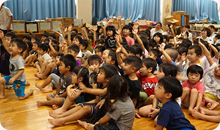 ただ紙芝居を見るだけでなく、子どもたち自身も参加することで会場は大盛り上がり!