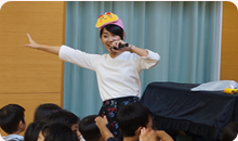 大きな紙芝居の中に出てくる春夏秋冬の食材を探してもらうパート。今日は前に出たい気持ちが強すぎるあまり、泣き出す子が出るほど前のめりでした。今日を楽しみにしてくださっていたようで、続く『どっこくん体操』や『ピーヒャラダンス』もとても楽しそうにしてくれて、最初の心配を少し忘れるほどでした。