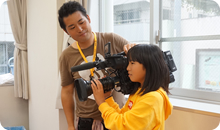 後半は、カメラさん、VE(ビデオエンジニア)さん、音声さんの技術チームの元で、実際のカメラをもったり、モニターに映る映像の色や光をミキサーで変えてみたり、ヘッドフォンをつけてお友達の声をひろってみたり!