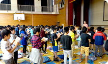 さて、今回参加してくれたのは5年生。3クラスでおよそ90人。とても元気がよく、素直な子どもたちが集まってくれました。