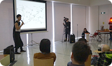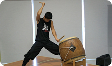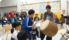 体を伝わる鼓動がやみつきになったようで、会が終わった後も太鼓の音がにぎやかに響いていました。