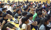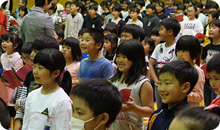 多くの児童、そして保護者の方々にお集まりいただいた天応小学校。アナウンサーという仕事についての紹介などからスタートし、早口言葉も披露させていただきました。自信のある児童たちには前に出てチャレンジしてもらいましたが、しっかりと声が出ている子ばかり。我々も元気を分けてもらいました。