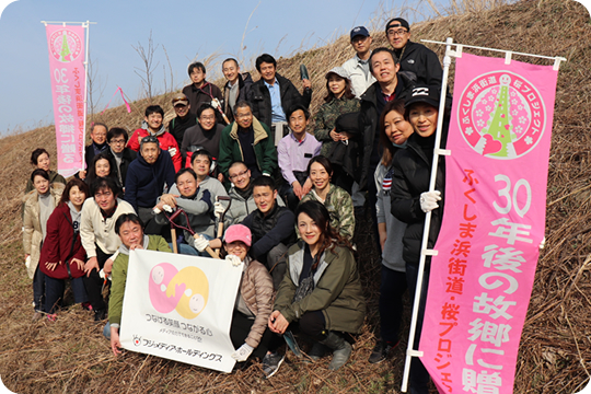 地震や津波、さらに放射能の影響を受けた福島県で「30年後に子どもたちが誇れる桜並木を」との思いからスタートした「ふくしま浜街道・桜プロジェクト」。フジ・メディア・ホールディングスはその趣旨に賛同し、2013年度から協賛しています。