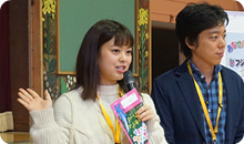 前半は、姿勢を正して声を出す練習。立本アナウンサーに教えてもらったことを真似して、綺麗に声を出すことができていました。