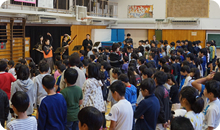 特別授業では、最初にそれぞれの楽器の紹介をして、子どもたちに音楽や楽器に対して興味を持ってもらったところで、いよいよ「くるみ割り人形」の世界へ!