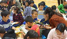 以前、同じ江東区で行った『あなせん』の際にお世話になった校長先生が学校を移られ、5年ぶりの再会! 授業を始める前から気分が上がります。