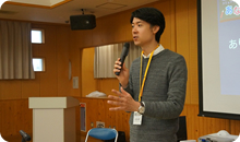 後半は、応用編。実際に番組で使用されたニュース原稿を読んでもらいました。前半で声を出す事に大分慣れたのか、前に出てきてみんなの前でニュースを読むという緊張感もある中、しっかりと大きな声で、堂々と読んでくれました!