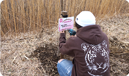今回植樹した苗木はすでに植樹したものに合わせて3年物を植えました。肌寒い日だったのですが萱の根や石をよけながら42本を植えたころには汗ばむくらいでした。