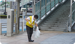 今回は、新型コロナウイルスの感染拡大を防ぐため、事前にエフシージー総合研究所の川上裕司研究員のアドバイスを頂き、①集団ではなく一人で清掃する ②必ず軍手を着用 ③ゴミを拾う際にはトングを使うなどの対策を徹底し、通常より時間を短縮して約30分間実施しました。
