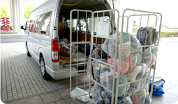 新型コロナウイルスの影響もあり、おうち時間で衣類の断捨離や整理整頓をする機会も増え、社員、スタッフ、関連会社の協力で毎日たくさんの衣類を持参していただいております。