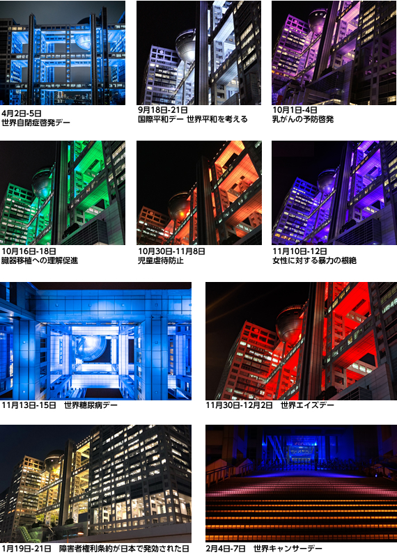 社屋イルミネーションAURORA∞を活用しアウェアネスカラーライトアップを実施