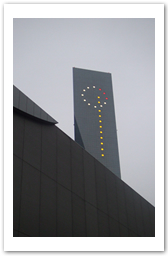 ちなみに、煙突の丸と直線の照明は、時計になっているんですよ~!丸の赤い点が【時間】、黄色い直線が【分】を示しているそうです。