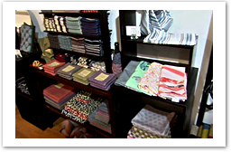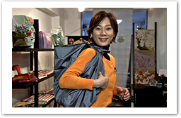 「ふろしきや やまとなでしこ」は開店したばかりのお店。店長の菊田圭子さんはフランスに留学してフランスの文化を学んでいたときに日本の風呂敷の魅力とすばらしさに気付いて、それ以来夢中になってしまったとか。洗練れた雰囲気の漂う素敵な女性です。