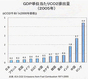 ![]() 図2 GDP単位当たりCO2排出量(2005年) |