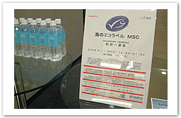 これはMSC認証マーク(海洋管理協議会 Marine Stewardship Council)といって通称「海のエコラベル」。過剰漁獲の問題を解決するための国際的な団体で、持続可能な漁業を推奨し、優れた管理を行う漁業を評価し報奨するための環境規格を満たす水産製品にはこのラベルが表示される仕組みになっています。