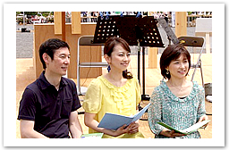 この朗読会はロハスクラブとの初の協同企画ですが、クラシックの生演奏をバックに、エコアナの澄み切った声が新宿御苑に響き、環境を考えるきっかけとなる新しい試みとして好評を博しました。