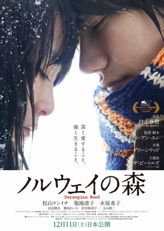 1987年の刊行以来現在までに累計発行部数が1000万部を超え、国内小説の発行部数歴代第1位を記録している村上春樹の小説「ノルウェイの森」。最新作の「1Q84」が社会現象になっているが、「ノルウェイの森」はそれをはるかに凌ぐレベルの社会現象を80年代後半の日本に巻き起こしていた。画期的な赤と緑の装丁も話題となり、その死生観を孕んだ深く美しい世界観に多くの人々の心が動かされ、時代が動かされた。そして、世紀を越えた今、その歴史的な小説が遂に映画化を果たす。これは単なるベストセラーの映画化ではなく、1つの事件であり、1つの奇蹟である。世界が待ち望んでいたこの奇蹟を今という時代に享受できる幸せを味わってほしい。今こそ「ノルウェイの森」が必要なのだ。深く、強く、そして限りなく美しいその世界が。