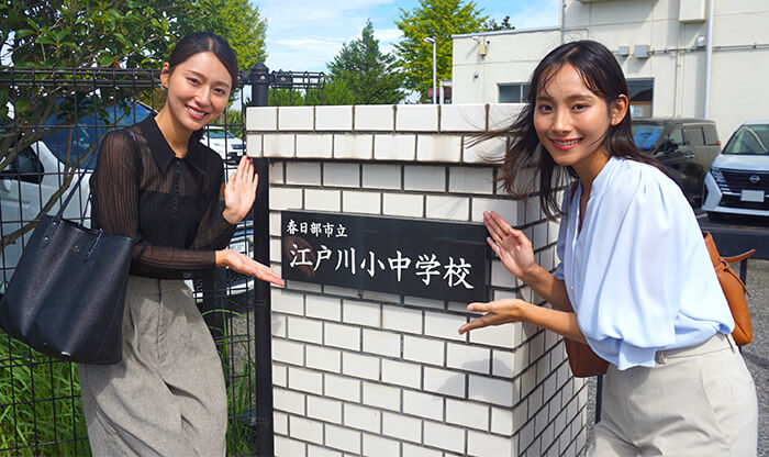 今回は石渡アナウンサーと埼玉県の春日部市立江戸川小中学校で「インタビュー&スピーチ講座」を行いました。はじめは少し緊張しているように見えたみんなも、講座が始まると積極的に手を挙げ、笑顔で私たちの話を聞いてくれました。