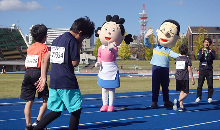 2019年以降、台風やコロナの影響で4年連続中止となっていた東北最大級のマラソン大会「東北・みやぎ復興マラソン」が、2023年11月5日に5年ぶりに開催され、スペシャルアンバサダーのサザエさん一家が応援に駆けつけました。