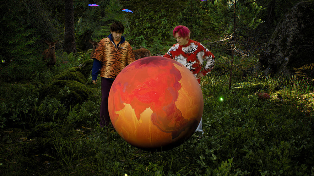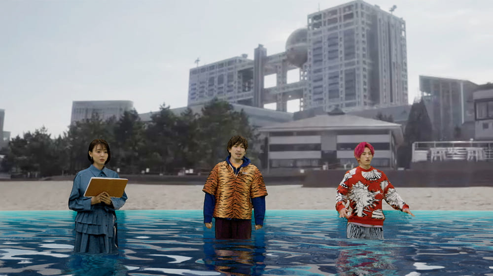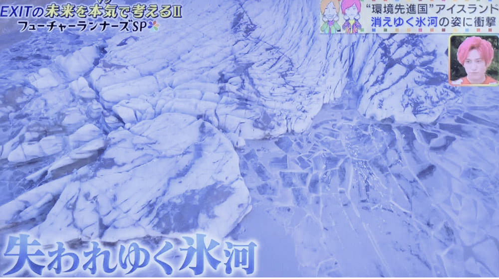 番組MCを務めるEXITがスタジオにいながら、美しい森の中や、アイスランドの氷河の上空、お台場の海の中にワープするダイナミックで臨場感のある映像になりました。(スタジオセットがないのでエコ!)