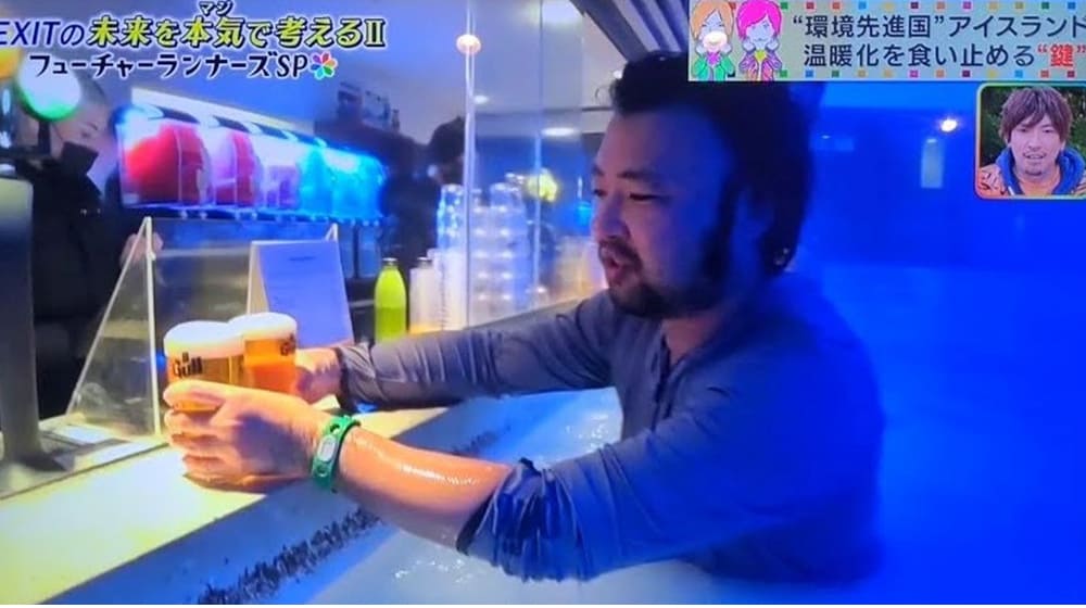 アイスランドの一大観光地「ブルーラグーン」は、発電の際に地下からくみ上げた熱水を再利用した世界最大の露天風呂!8700㎡という広大な敷地に年間100万人以上が訪れます。ディレクターも温水につかってビールをゴクリ!
