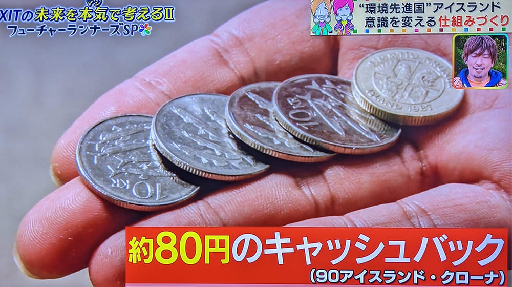 アイスランドの街中にはペットボトルや缶などを回収するリサイクルセンターがあります。ペットボトル3本と、空き缶2本を入れてみると…レシートが!それを受付に持っていくと、日本円でおよそ80円のキャッシュバック!飲み物に最初から容器代が加算されているため、リサイクルすると、お金が戻ってくるという仕組みです。