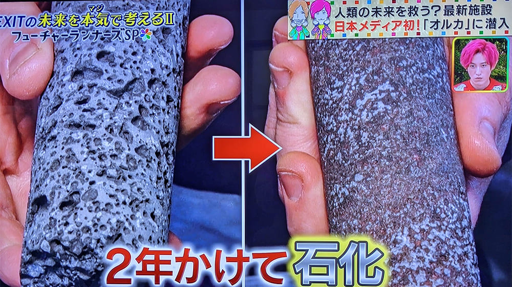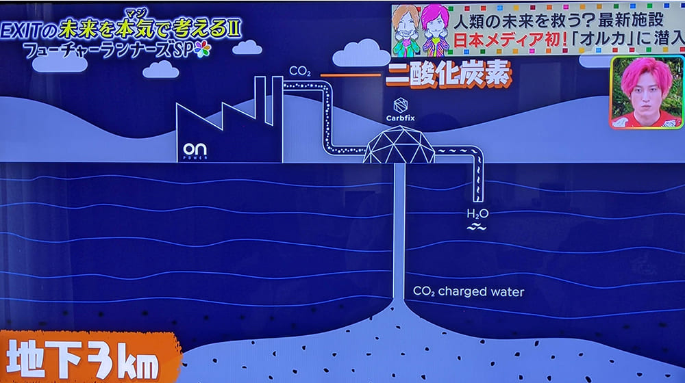 集めた二酸化炭素を水に溶かし、地下3キロの深さにまで送り込みます。それが、地下の「玄武岩」に染み渡り、2年かけて石化。そのまま地中深くに閉じ込めるというものです。
