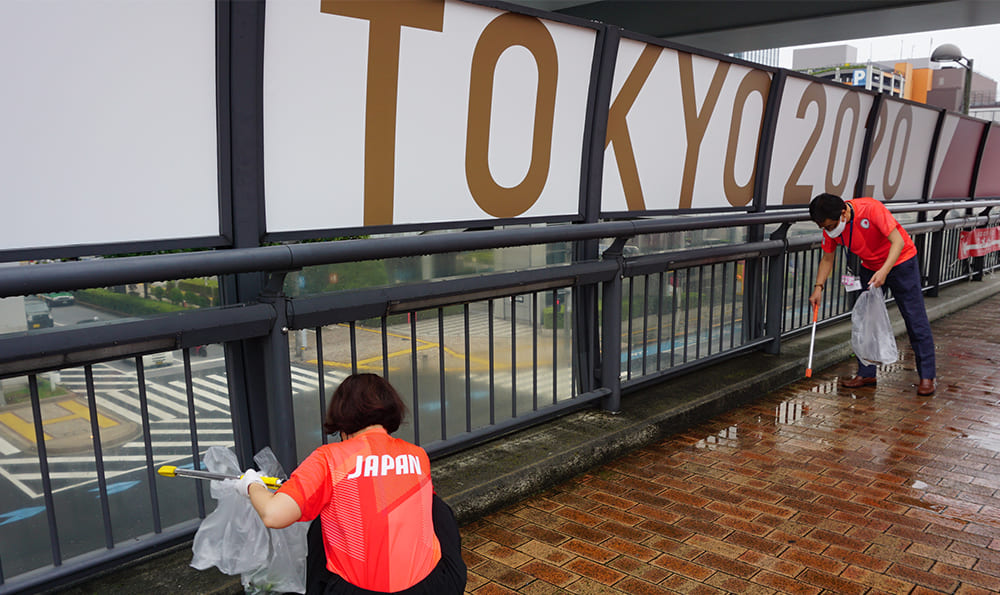 オリンピック開幕2週間前となる7月9日、競技会場が多く集まる臨海副都心エリアをクリーンにする合同清掃活動を行いました。この活動は『東京2020参画プログラム』として正式に認証されたものです。