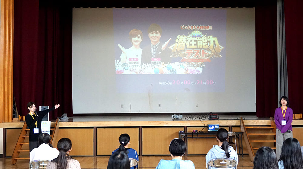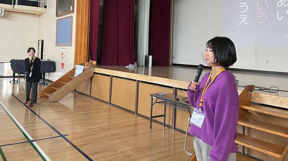 そして、授業後半での質問コーナーは、私たちに対してみんなから質問を投げかけてもらう「記者会見」形式で行いました。どんなことを聞かれるかな、と内心ドキドキしていた私……一番驚いた質問は「好きな曲はなんですか?」からの、「その曲を歌ってください」!(笑)まさかみんなの前で歌うことになるとは思いませんでしたが、どんどんと積極的になっていくみんなの姿がほほえましかったです。