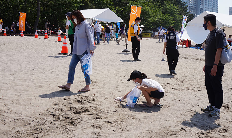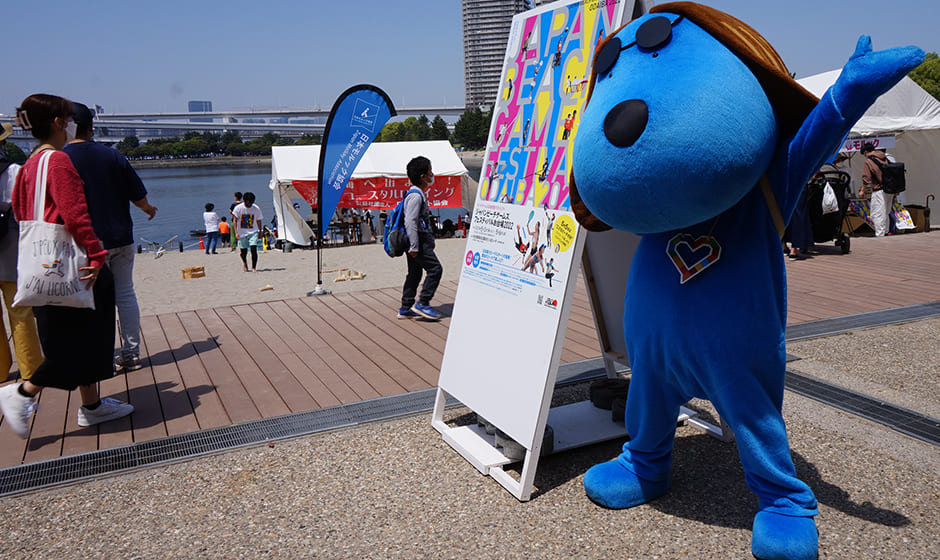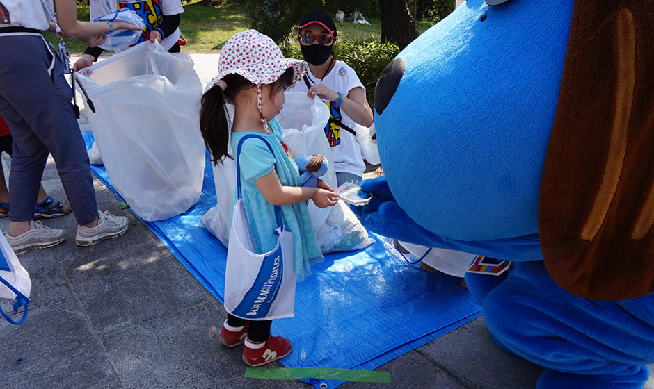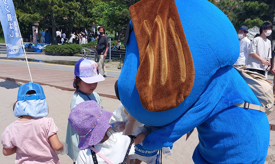 様々なビーチスポーツのイベントが開催されるなか、スポーツアスリートが中心となって次世代にきれいな海を残すために、環境問題に取り組むプロジェクト「ブルービーチプロジェクト」の活動に、フジテレビキャラクター ラフくんが子どもたちと一緒にビーチクリーンを行いお台場の海をきれいにしました。