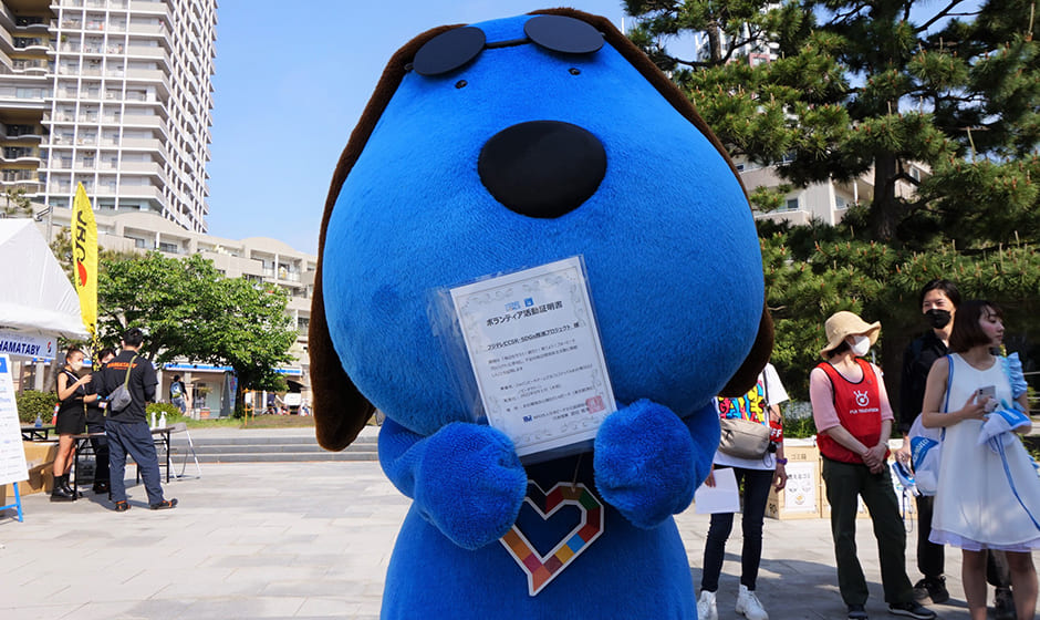 たくさんのゴミを拾った子どもたちには、ラフくんからのご褒美としてかわいいプレゼントが渡され、ラフくんもイベントの事務局から海辺環境保全活動に貢献した証明書を頂きました。
