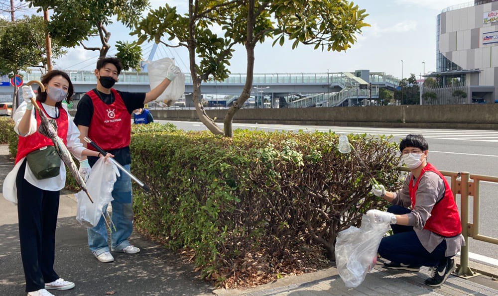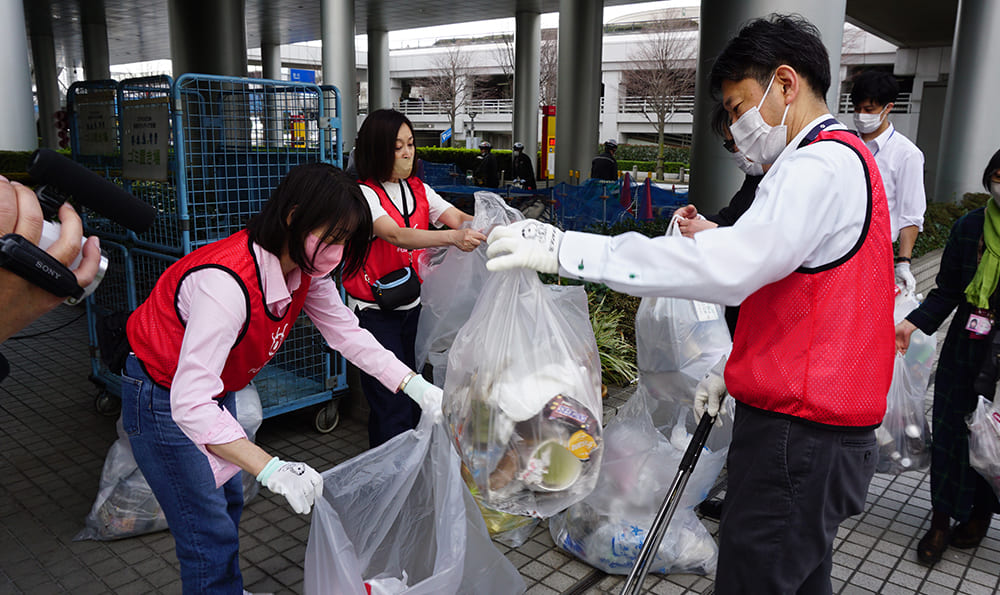3月10日 優しい春の風を感じながら清掃活動を行いました。今回で29回目となります。フジ・メディアホールディングス傘下の13社、計65人が、お台場エリアをくまなく歩いてきれいにしました。広い集めたゴミは、70リットルのゴミ袋15個分。