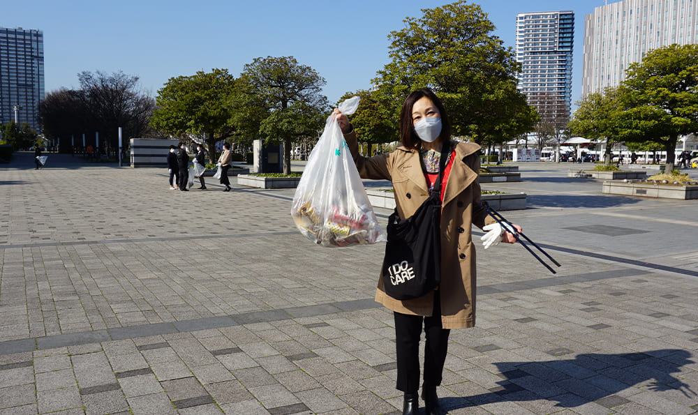 3月15日に、東京ビッグサイト前にあるシンボルプロムナード公園「石と光の広場」周辺で行われた「東京臨海副都心まちづくり協議会」の清掃キャンペーンに今年も参加しました。