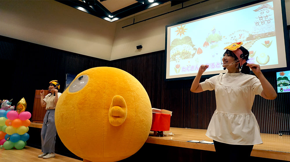 「すこやかふれあいフェスティバル2022」という子育て応援イベントで、藤本万梨乃アナウンサーと食育出前授業『ハロー!どっこくん。』を担当させていただきました。コロナ禍で中止が続き、3年ぶりの開催となった今年、多くの子どもたちが遊びにきてくれました。