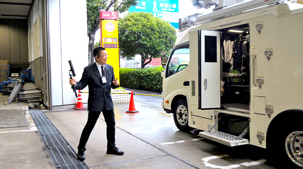 『かけはしプロジェクト』の授業では、アナウンス室からは西山喜久恵・遠藤玲子・生田竜聖・木村拓也・藤本万梨乃・小澤陽子の6名が参加しました。事前にもらっていた質問にまず、めざましテレビ担当の社員が動画を交えて番組の制作について回答し、さらに中継を繋ぎ、木村アナがスタジオから、また技術に関する質問には担当社員が中継車やカメラ機材などが保管されている機材室から答えました。