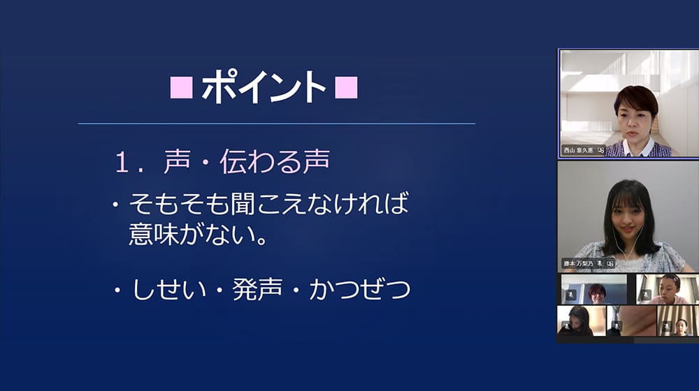 後半の『あなせん』では佐々木恭子・奥寺健・島田彩夏が講師として加わり、4クラスに分かれてスピーチ講座を実施。発声練習やスピーチのコツを伝えたあと、子どもたちが披露する1分ほどのスピーチに対して一人ひとり指導をしました。