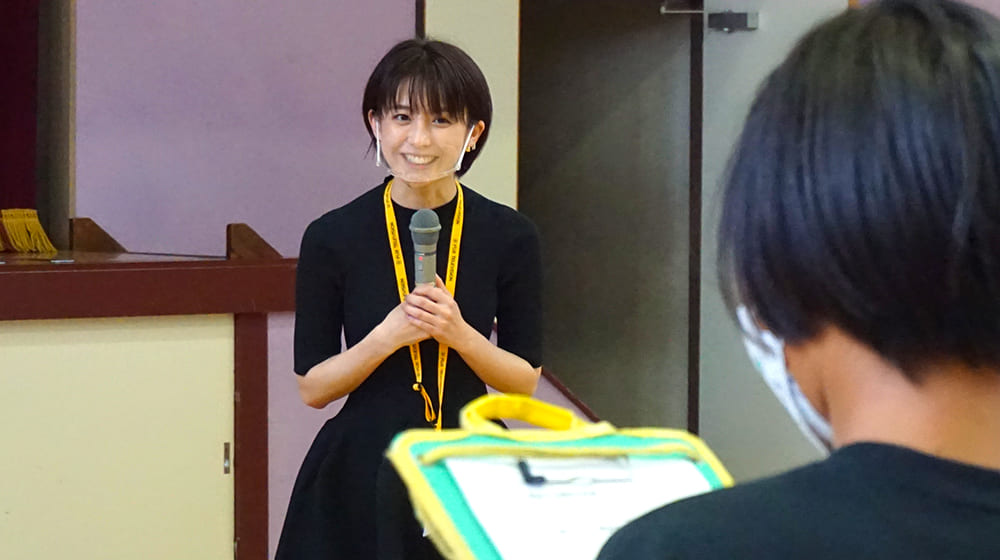 授業の後半では、全員から私たちアナウンサーに質問を投げかけてもらい、その情報をまとめてみんなの前でスピーチをしてもらったのですが、それぞれとても上手に聞き出した内容をまとめてくれ、なおかつハキハキとわかりやすく話すことができていました。思わず、田淵アナとうなってしまうほど、みなさん本当に立派でした!