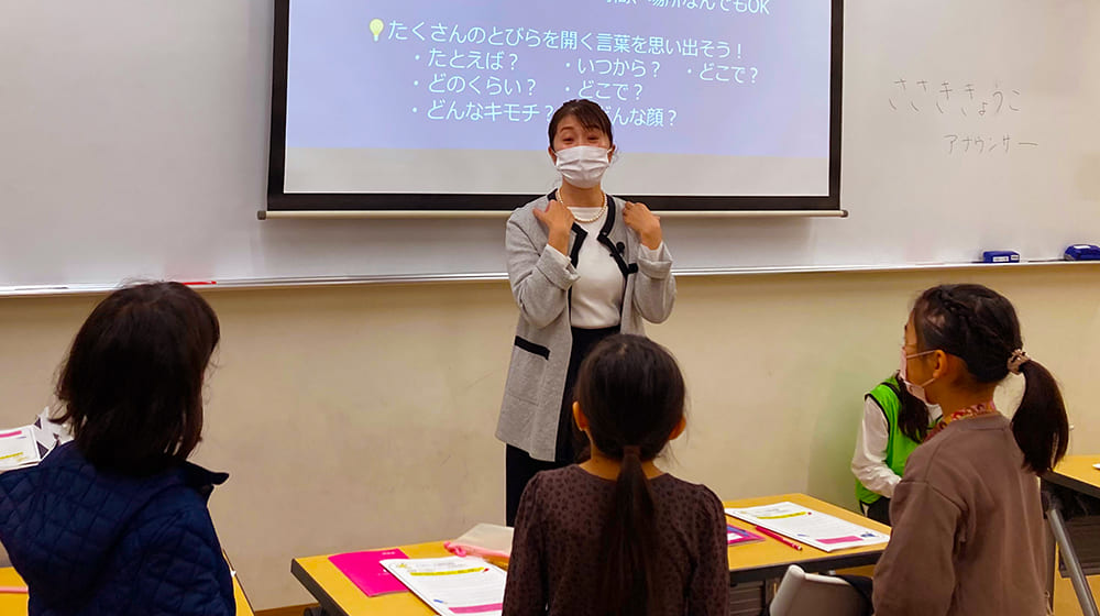 学校の授業を飛び出して、学年も1~4年生が混在、みんなが「初めまして!」の関係の中で、どんな『あなせん』になるか。「人の心のトビラ」を上手にノックするには?のコツを伝えてワークショップを実践してみたら…最初はモジモジしていた隣同士の「初めて」同士が、いつの間にかチーム一体になって発表の手が挙がること挙がること…