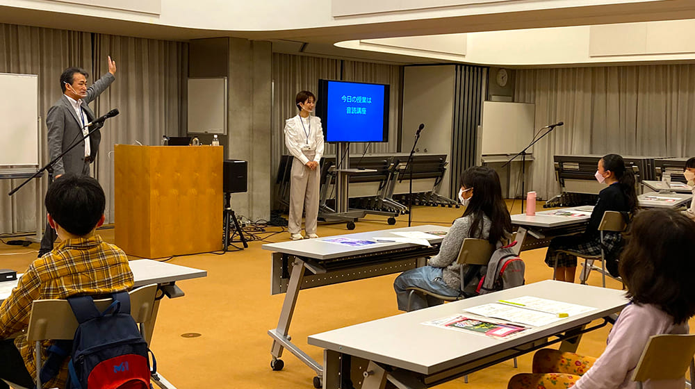 フジテレビ公式YouTubeで配信中のデジタル紙芝居「ごん狐」の題材を使って、小学校4~6年生に朗読レッスンをしてきました!「ごん狐」に出てくるそれぞれの役になりきって、動く動画に合わせながらセリフを本格的なマイクに向かって読み上げるアフレコを、積極的に楽しんでくれました。