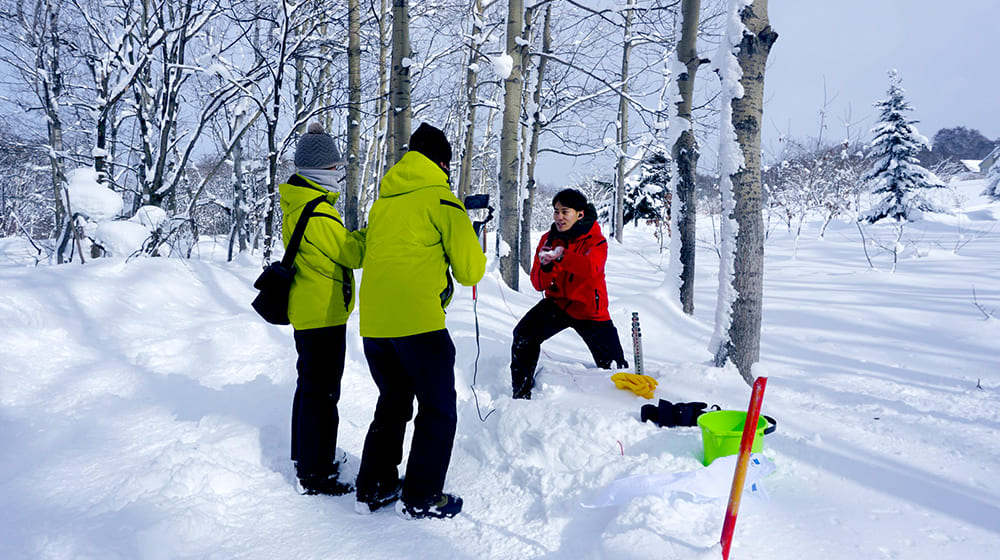 手で握ってもすぐには固まらず!これが北国の雪かと感動です。