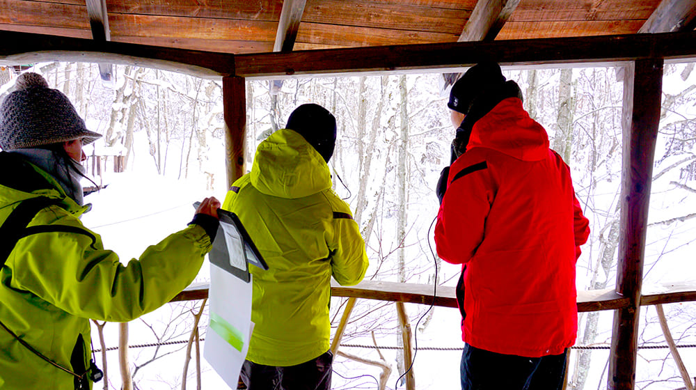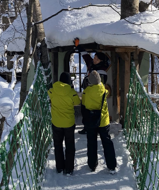 Webで北海道と繋がって、ツリーハウスからの景色に「気持ちいいー」という言葉が出ました。