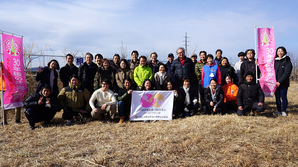 2023年2月4日、フジ・メディア・ホールディングス各社の有志が集い、福島県相馬市で桜の植樹活動を行いました。