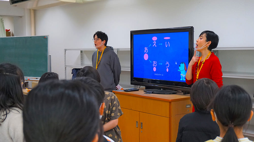 発声練習や滑舌練習では、「難しい~」と言いながらも、どんどん練習してくれる子ばかりで、とても活気のある授業になりました。模擬でサッカー実況をした時にみんなが盛り上がってくれたのが、とても嬉しかったです。