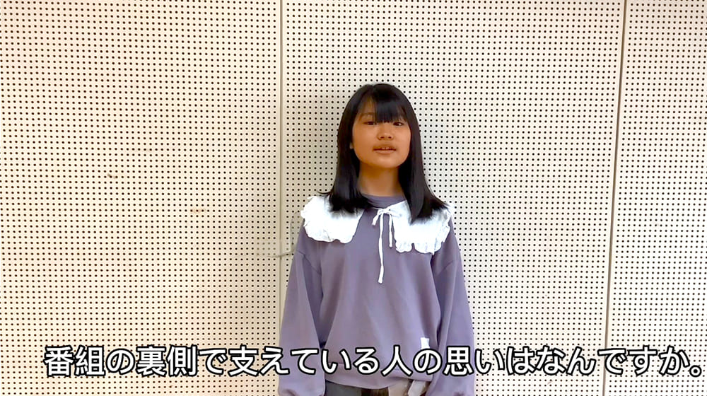 「子どもたちも現場の方の声を聞けると身近に感じながら学習に取り組める」と、番組作りに関することやテレビの仕事に対する意識など、8つの質問を先生が動画に撮って送ってくれました。