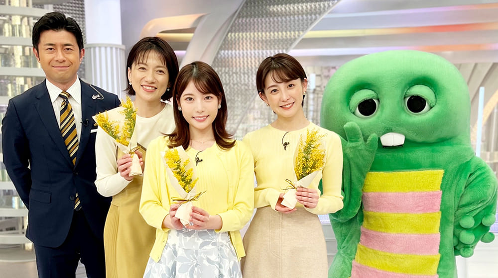 「国際女性デー」当日は、生放送に携わるアナウンサーがミモザカラーを身につけて番組に出演しました。