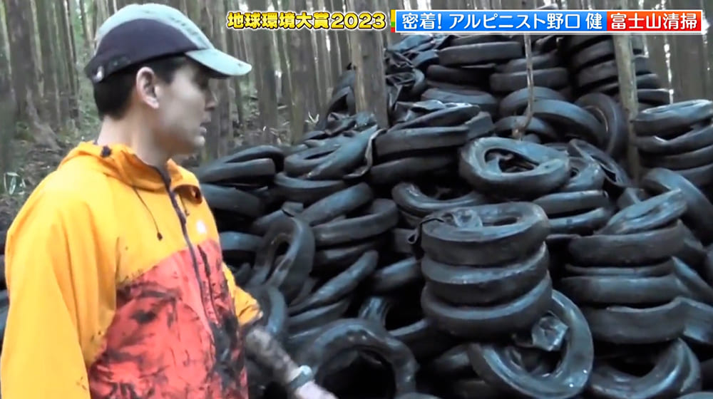 その映像を見て、私は衝撃を受けました。番組でも放送しましたが、山道沿いにずらっと不法投棄されたタイヤが積まれていたのです。さらには、ヒマラヤに捨てられた日本語の書かれたゴミの数々。恥ずかしながら、見たことのない映像ばかりでした。野口さんは23年前から、富士山や海外の山々の清掃活動を行っていることを、そこで知りました。